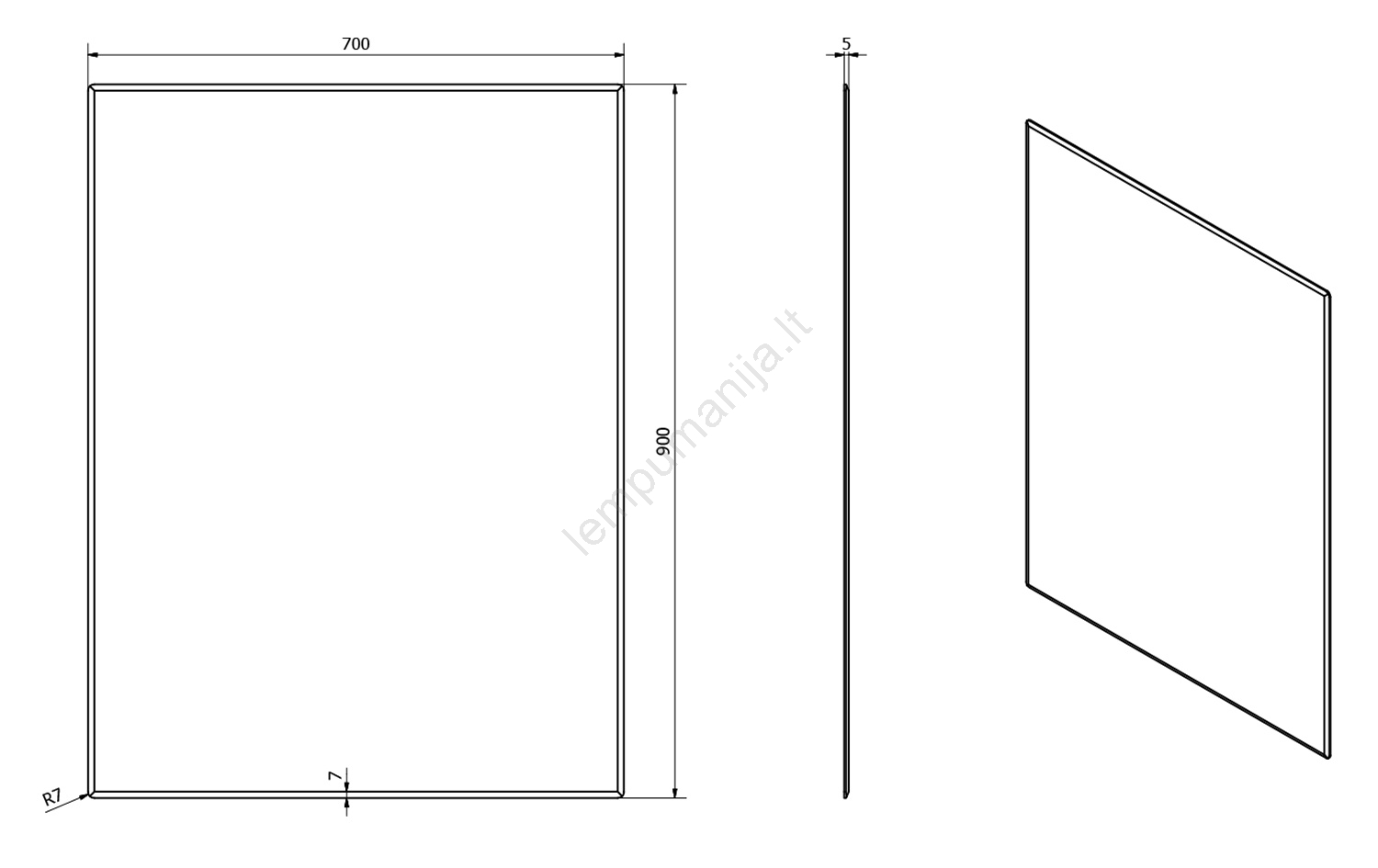 • Veidrodis turi 7 mm pločio fazetę.