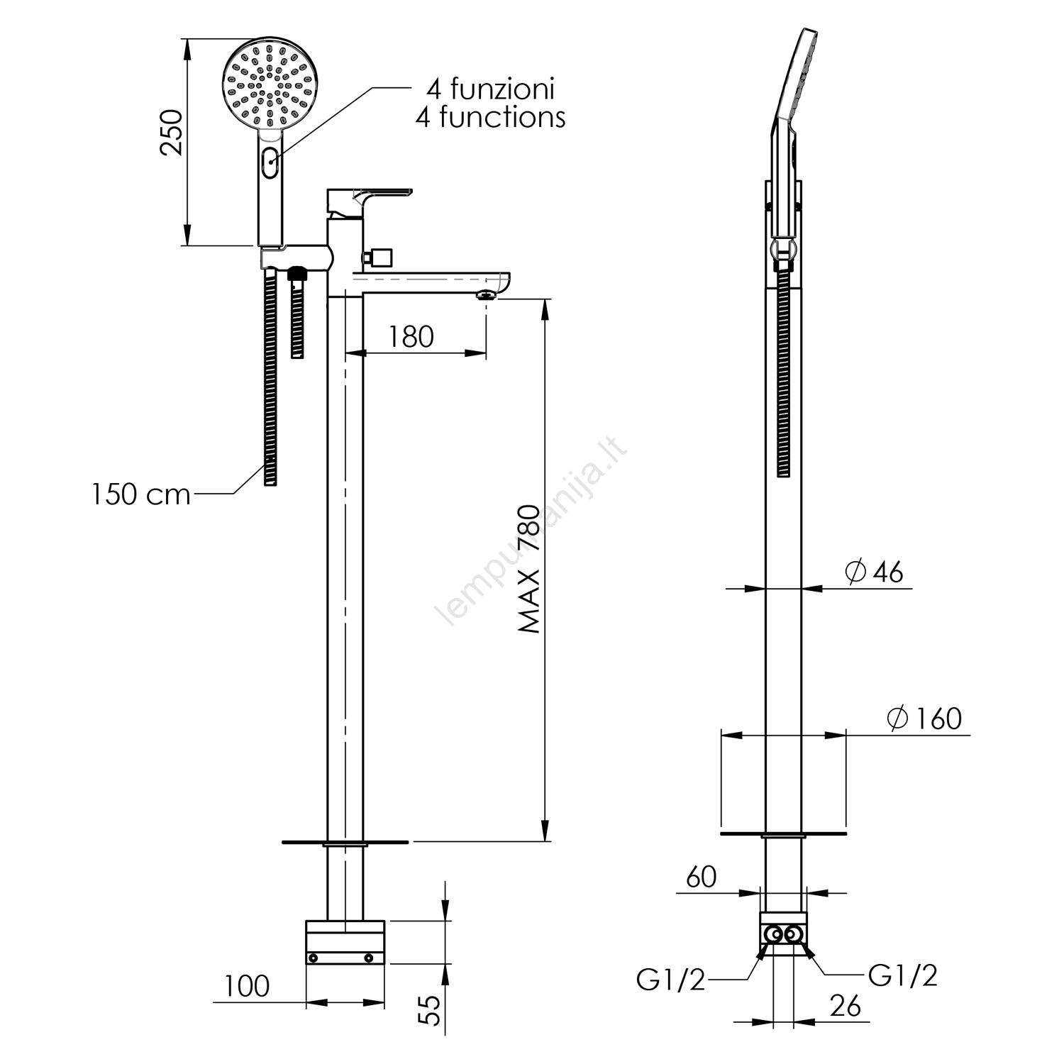 • Šis vonios maišytuvas skirtas grindiniam montavimui.