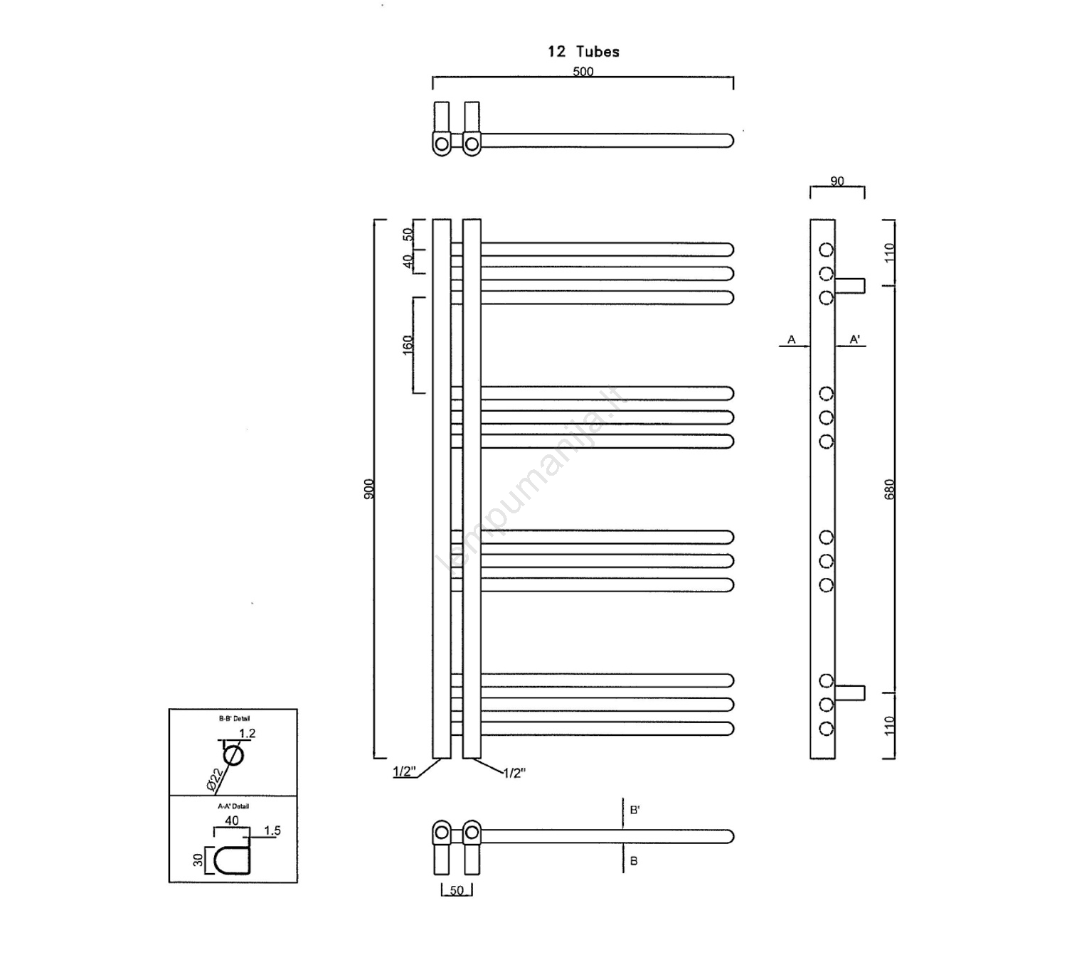 Sapho - vonios radiatorius DORLION 50x90 cm, blizgus chromas | Lempumanija