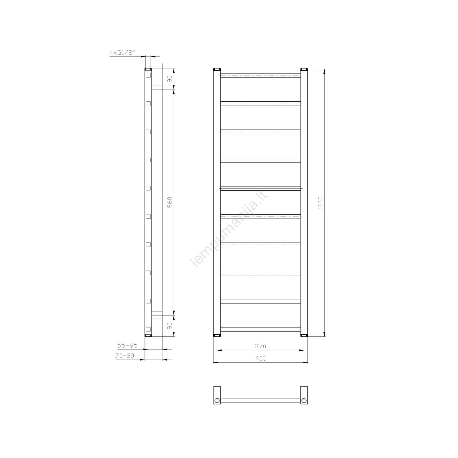 Sapho - vonios radiatorius METRO LIGHT, 247 W, 40 x 114 cm, baltas