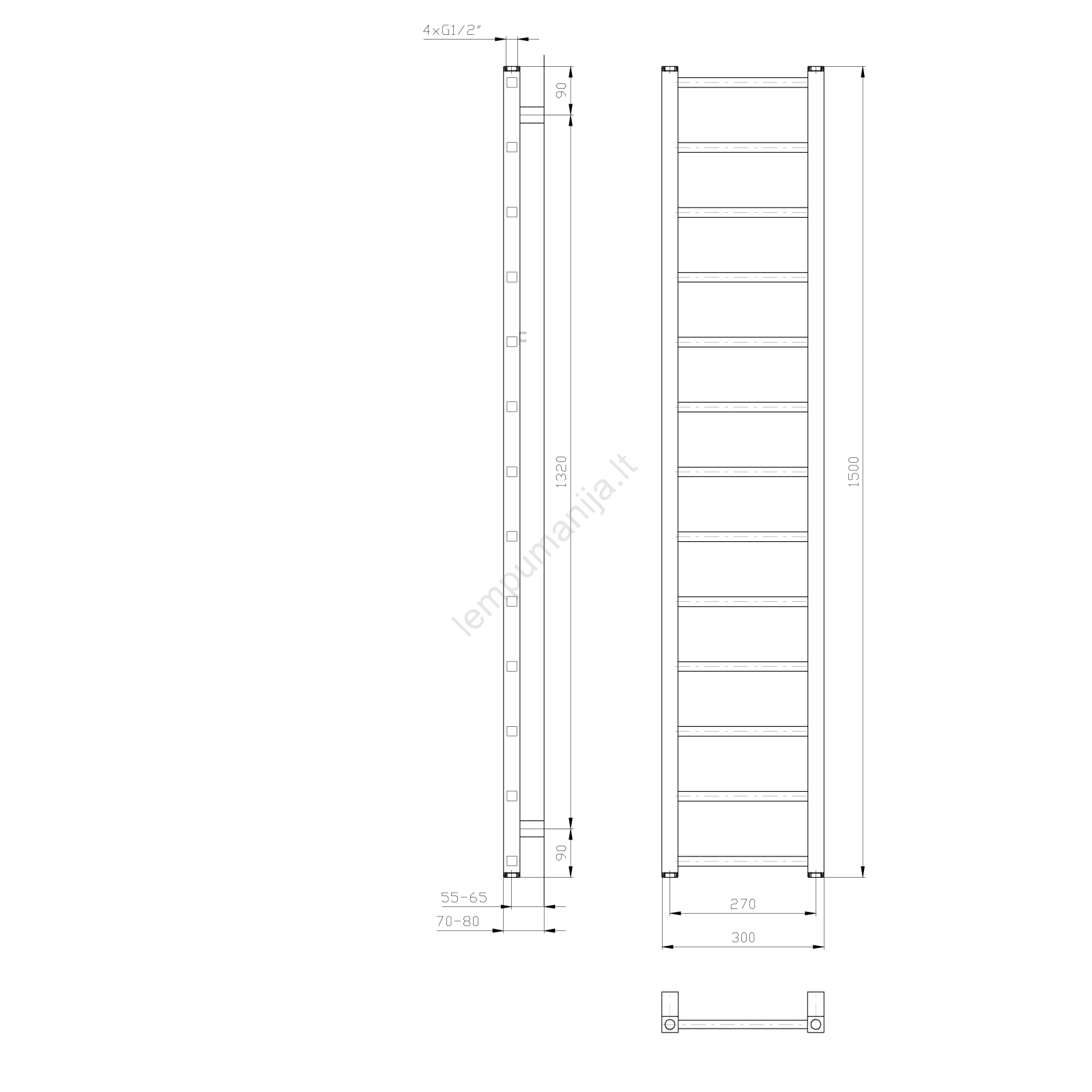 Sapho - Vonios radiatorius METRO LIGHT 276W 30x150 cm baltas