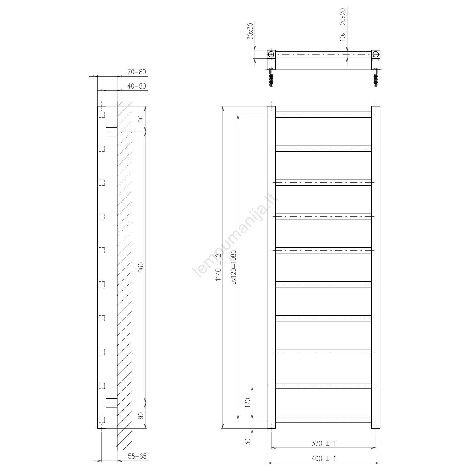 Sapho - Vonios radiatorius METRO DOS 247W/230V 40x114 cm matinė juoda