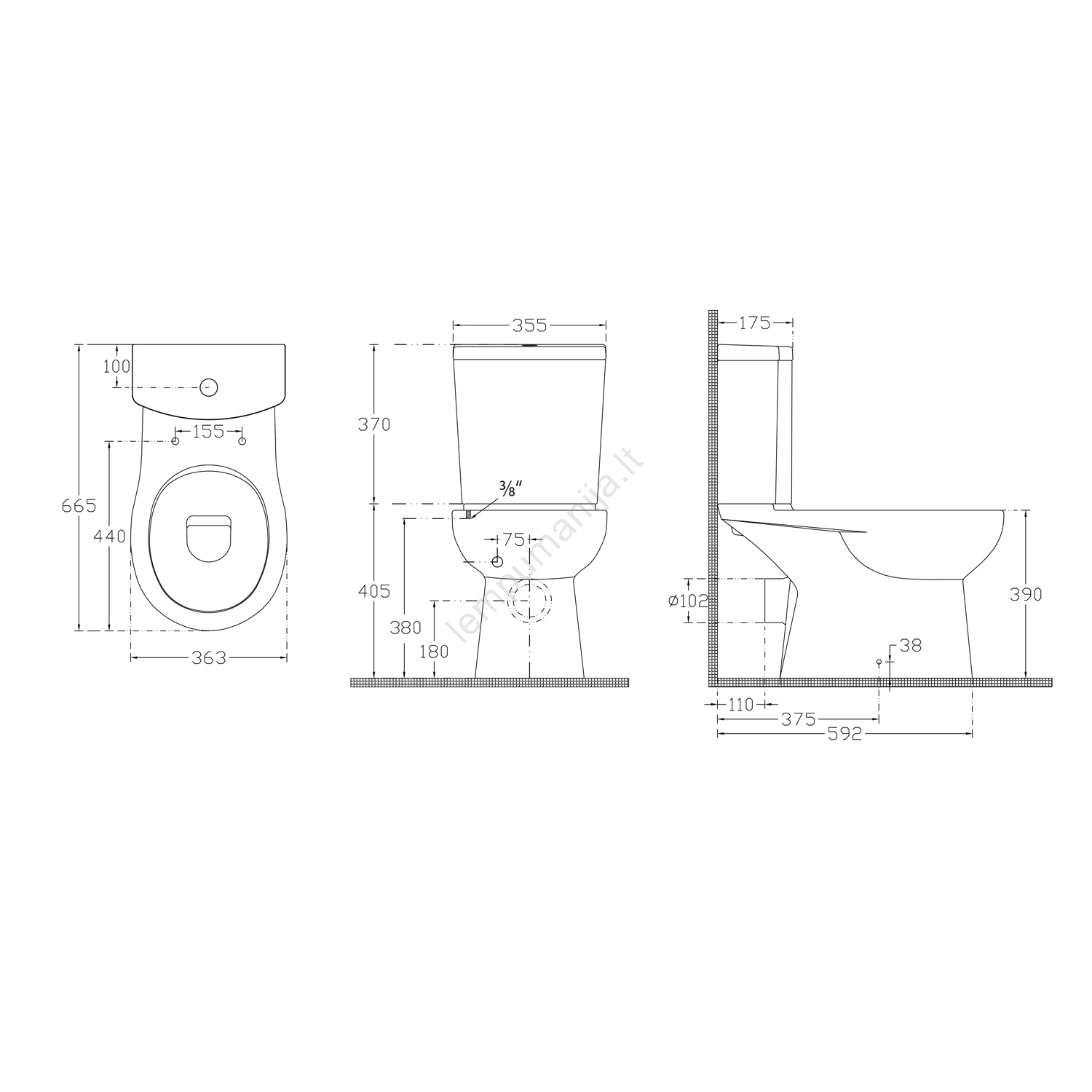 • Šis modelis skirtas galiniam nuotekų išvedimui.