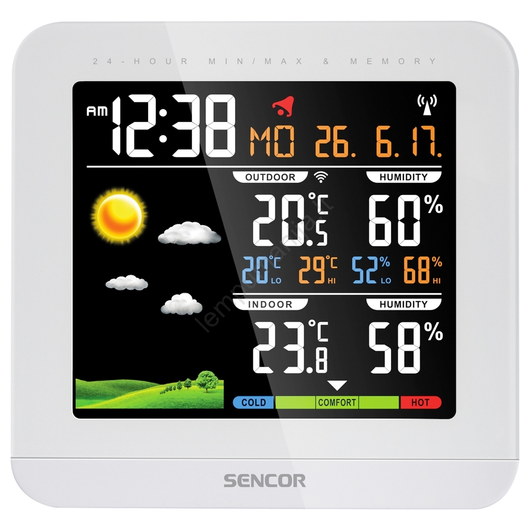 Sencor - Orų stotis su spalvotu LCD ir žadintuvu, 3xAAA + 2xAAA, balta | Lempumanija
