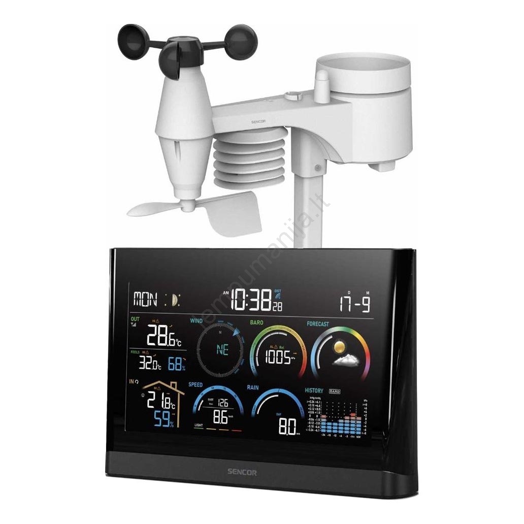 Sencor - Profesionali meteorologinė stotis su LCD ekranu ir žadintuvu 5V/3xAAA + 3xAA | Lempumanija