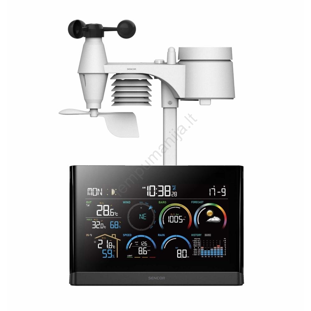 • Patogi meteorologinė stotelė su belaidžiu 5v1 jutikliu ir spalvotu LCD ekranu.