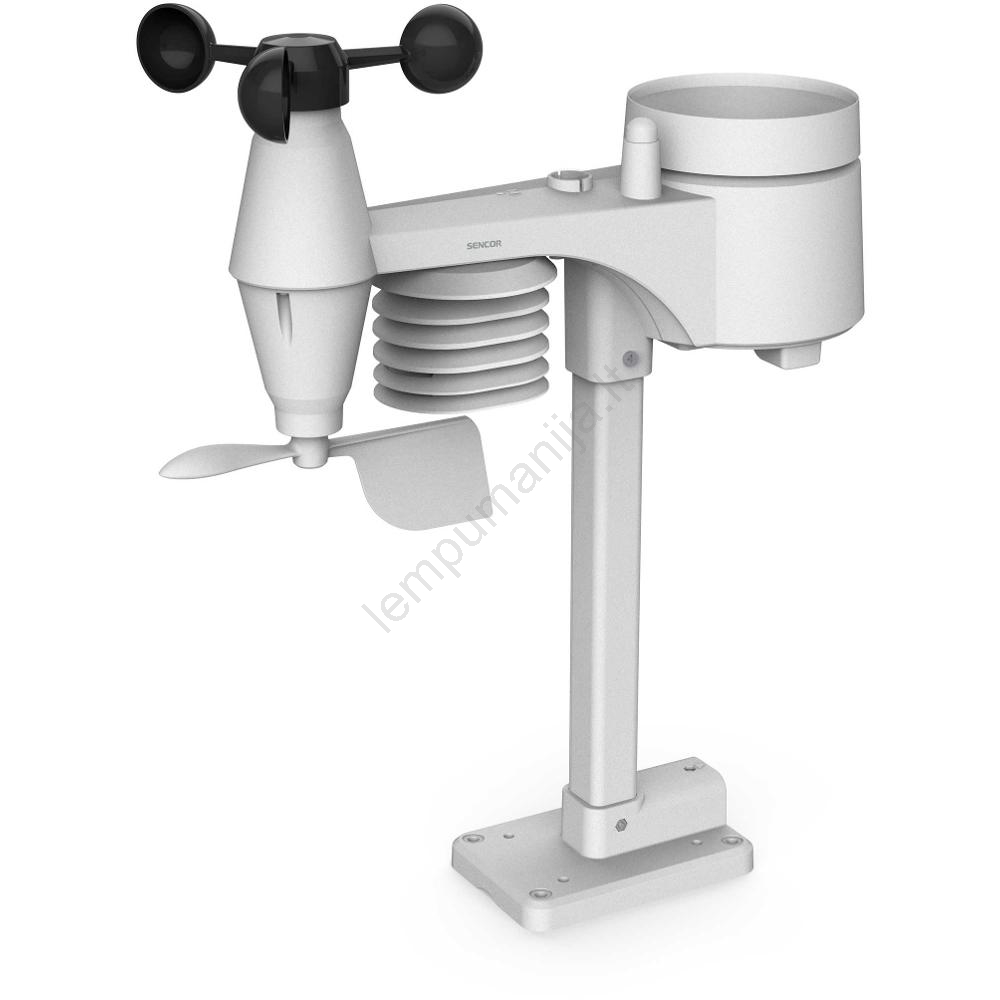 • 5v1 jutiklis: vėjo greitis, vėjo kryptis, krituliai, temperatūra, drėgmė (įeina į komplektą).