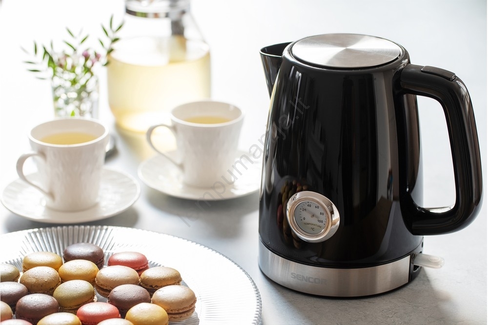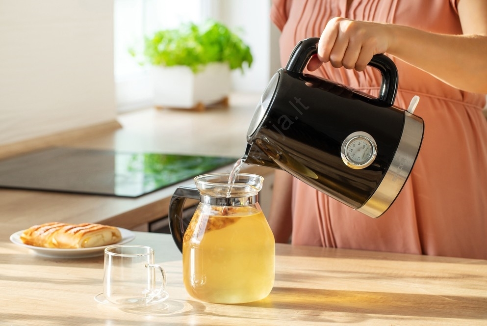 • Elektrinis virdulys su termometru, leidžiančiu pasiekti optimalią temperatūrą įvairiems arbatų, kavos ir kt. tipams.
