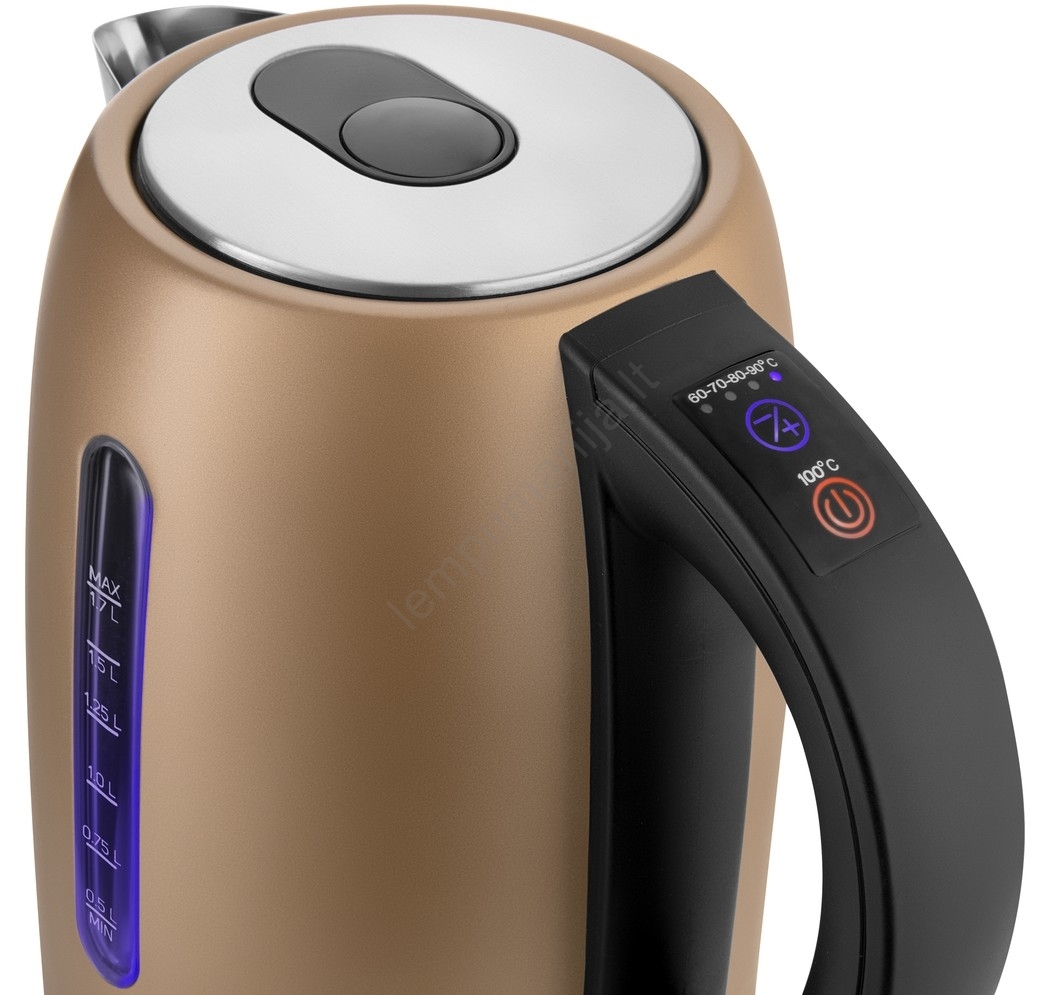 • Trys veikimo režimai: vandens šildymas iki 100°C / vandens šildymas iki pasirinktos temperatūros / pasirinktos temperatūros palaikymas 120 min.