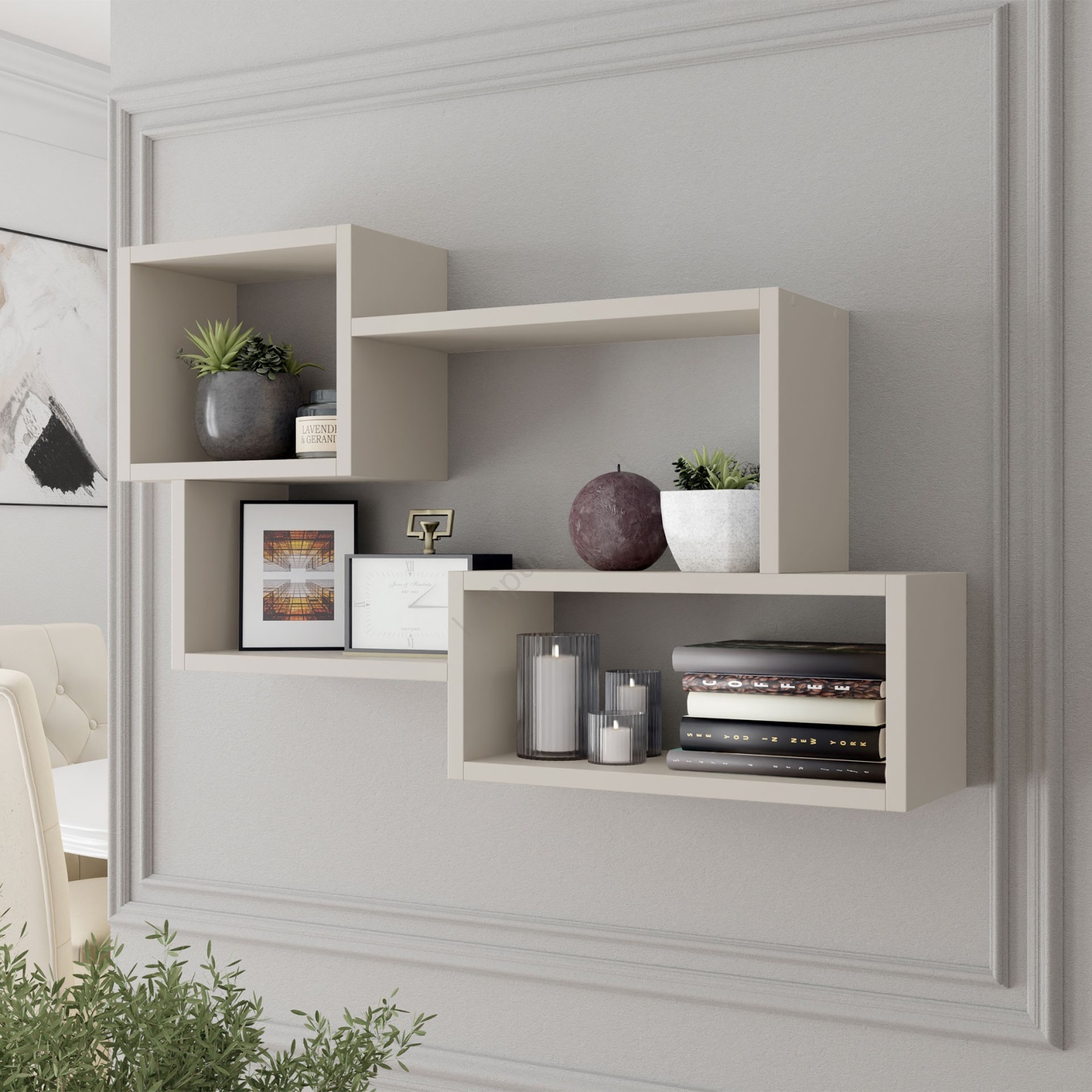• Sieninė lentyna, skirta eksponuoti knygas, dekoracijas ir dar daugiau.