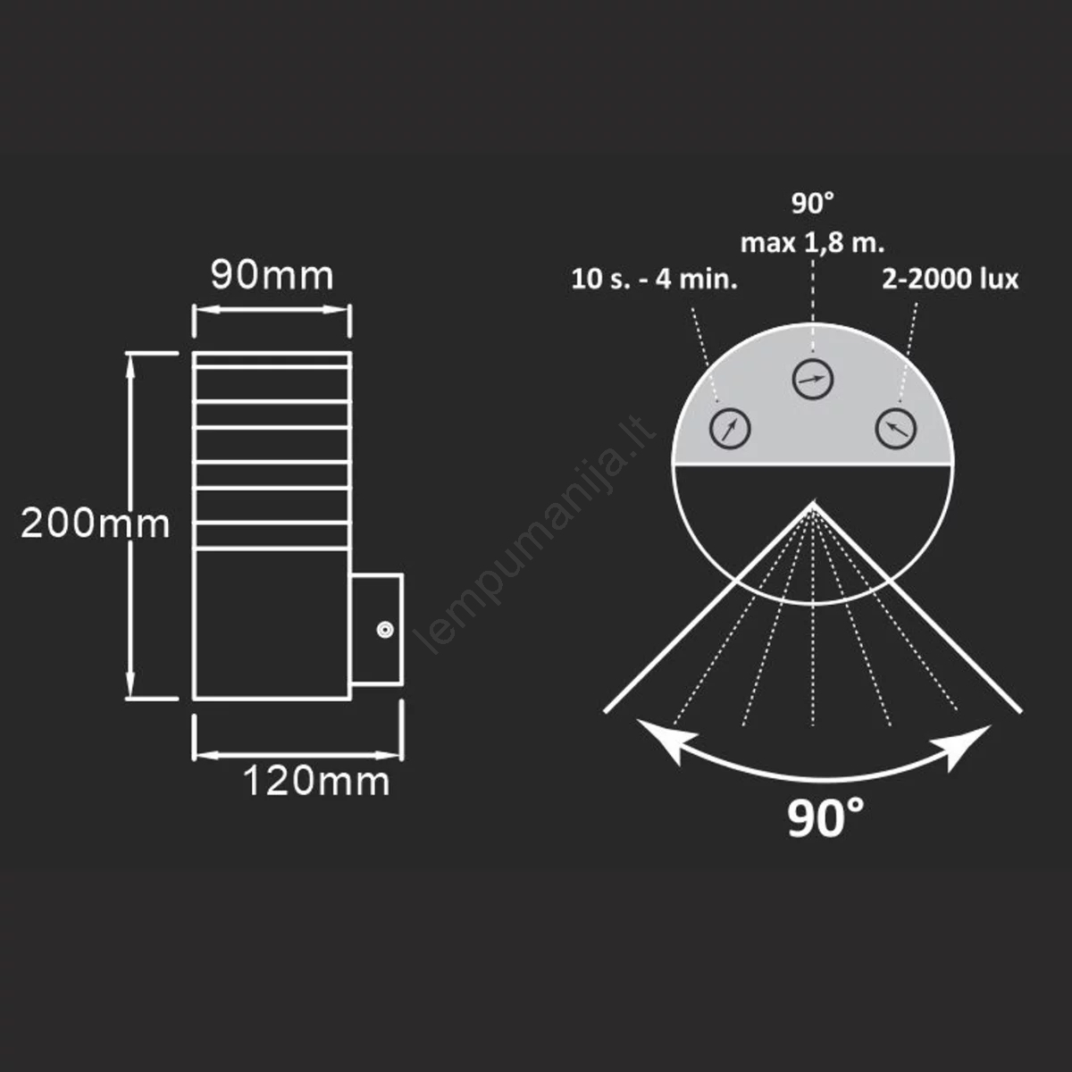 • Reguliuojamas apšvietimo laikas: 10 s - 4 min.