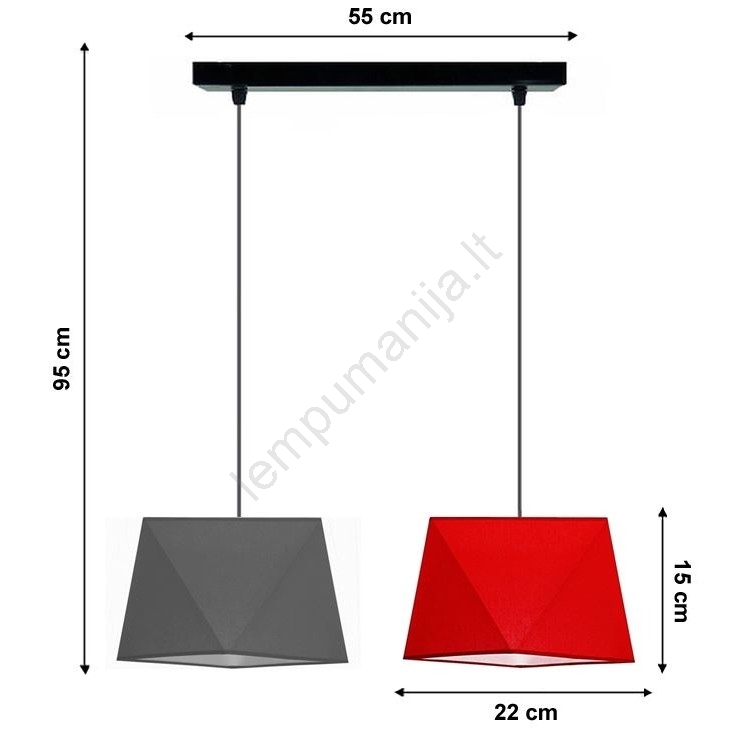 Sietynas, kabinamas ant virvės DIAMENT 2xE27/60W/230V pilka ir raudona | Lempumanija
