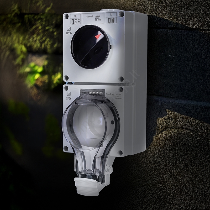 Lizdas drėgnoms patalpoms su jungikliu 230V/16A IP66