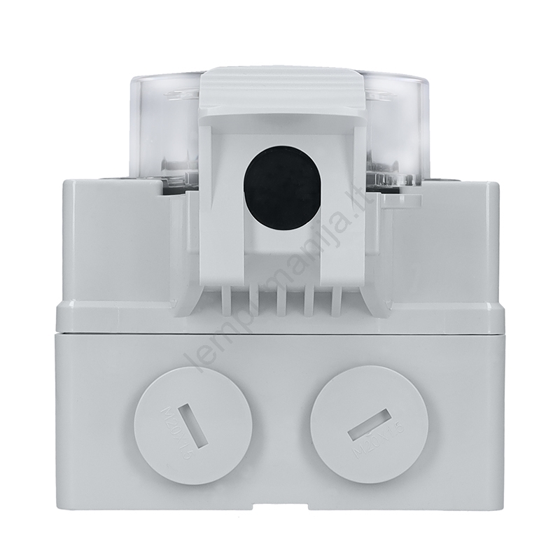 • Srieginis įvadas/išvadas 2x M20x1,5 su vandeniui atspariais srieginiais kamščiais, skirtas sujungti su kitais lizdais arba kita elektros instaliacija.