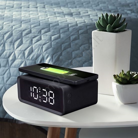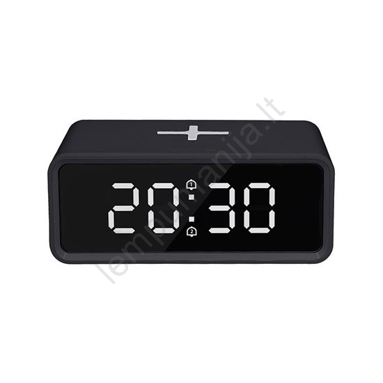 Skaitmeninis laikrodis su Qi belaidžiu įkrovikliu 230V/CR2032, juodas