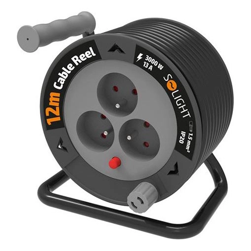 Solight PB24 - prailginimo kabelis ritėje, 3 lizdai, 12 m | Lempumanija