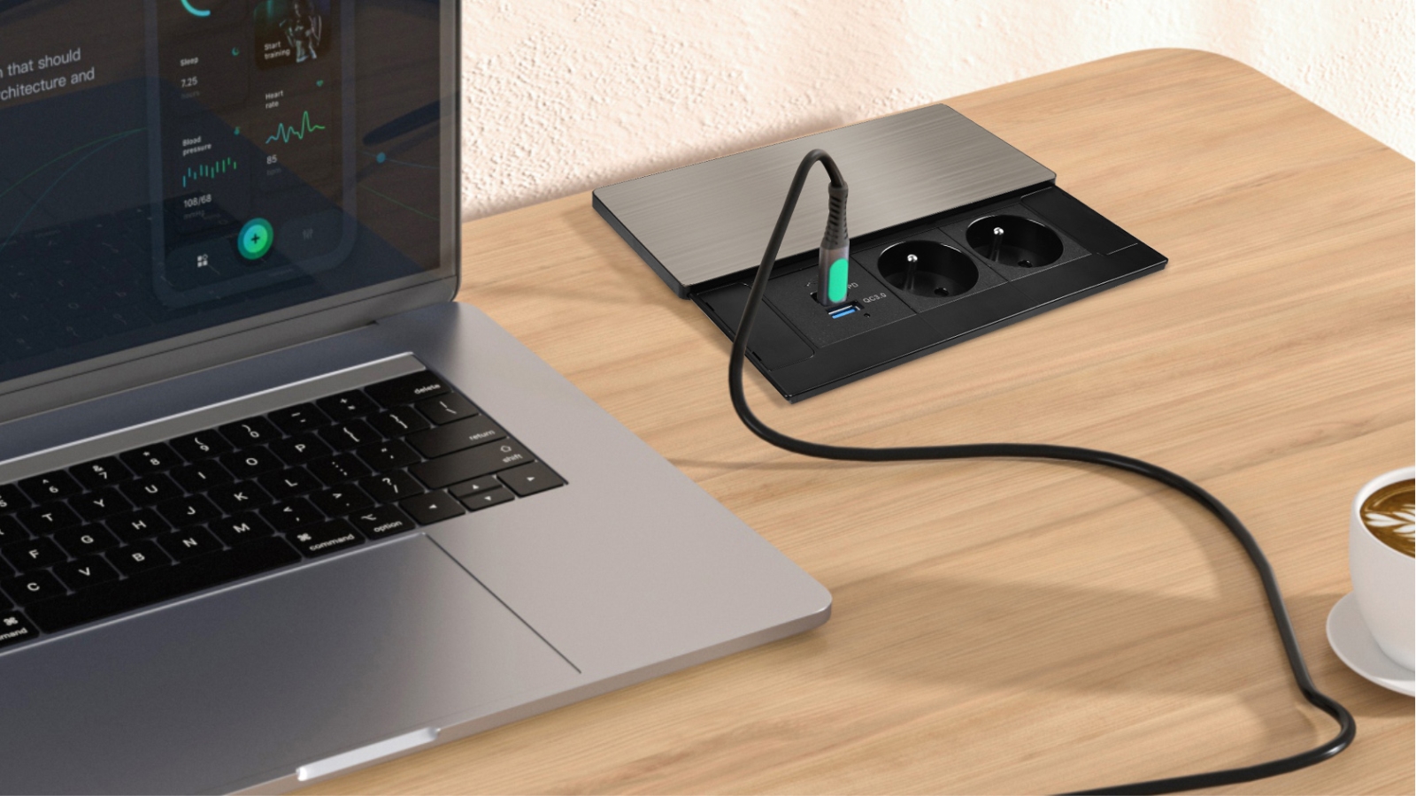Įmontuojama rozetė su 20W belaidžiu įkrovimu, 2 lizdai + USB-A + USB-C