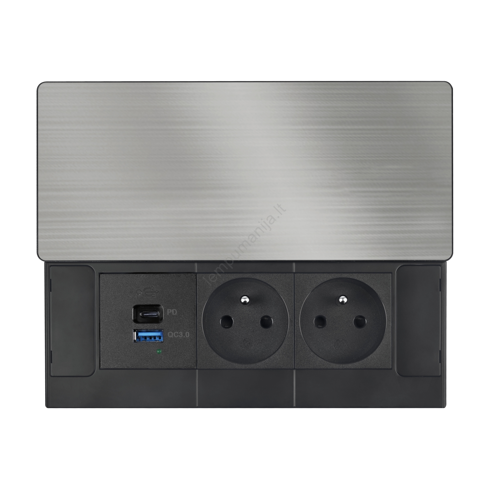 Įmontuojama rozetė su 65 W belaidžiu įkrovimu, 2 lizdai + USB-A + USB-C