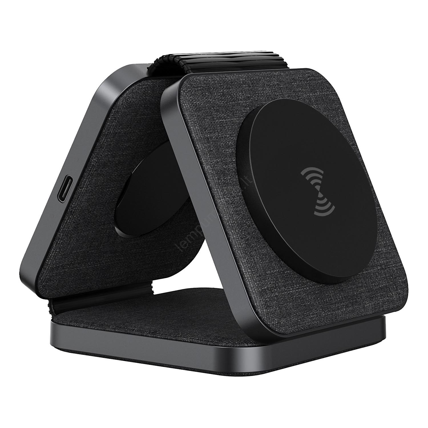 • Dizainas: sulankstomas, nešiojamas, su keliomis įkrovimo plokštelėmis (“3v1”) ir galimybe naudoti kaip stovą.