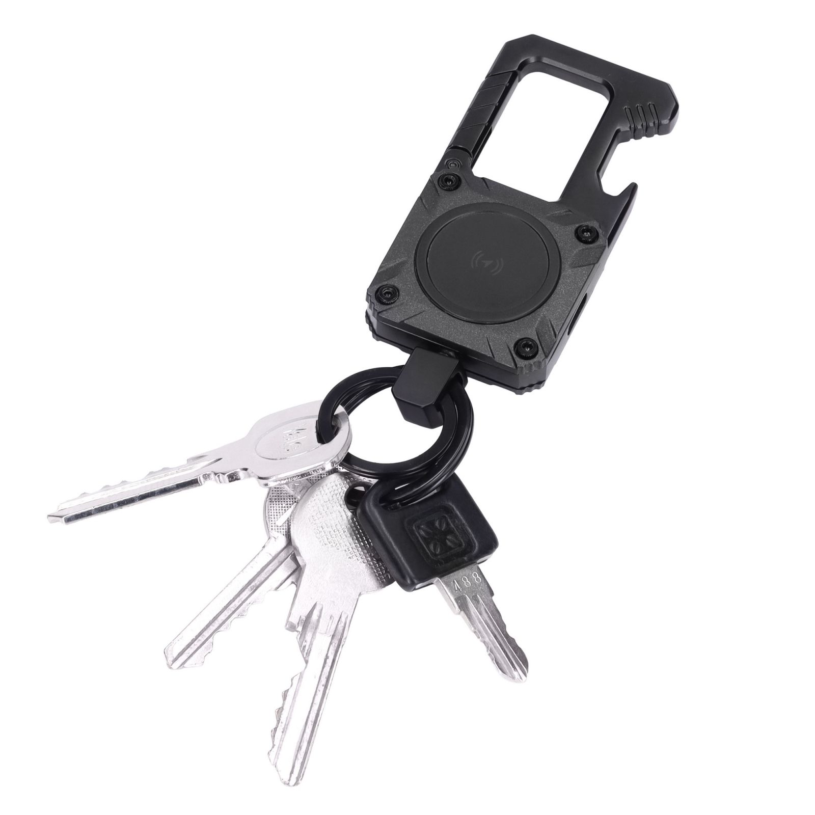 • Su šiuo stilingu metaliniu raktų pakabuku jūsų raktai, kuprinė ar kiti vertingi daiktai visuomet bus saugūs ir po ranka.