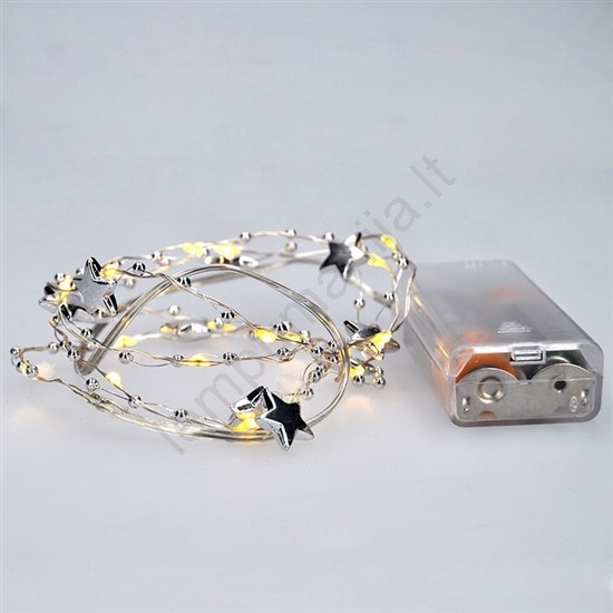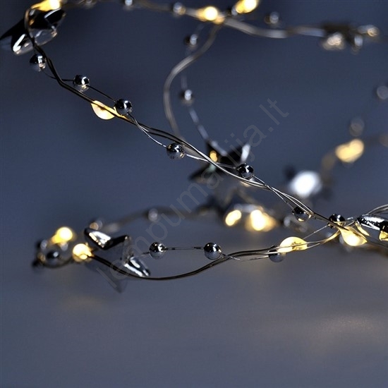 • LED kalėdinė girlianda su sidabrinėmis žvaigždutėmis.