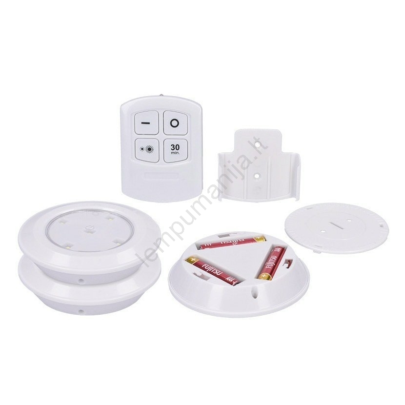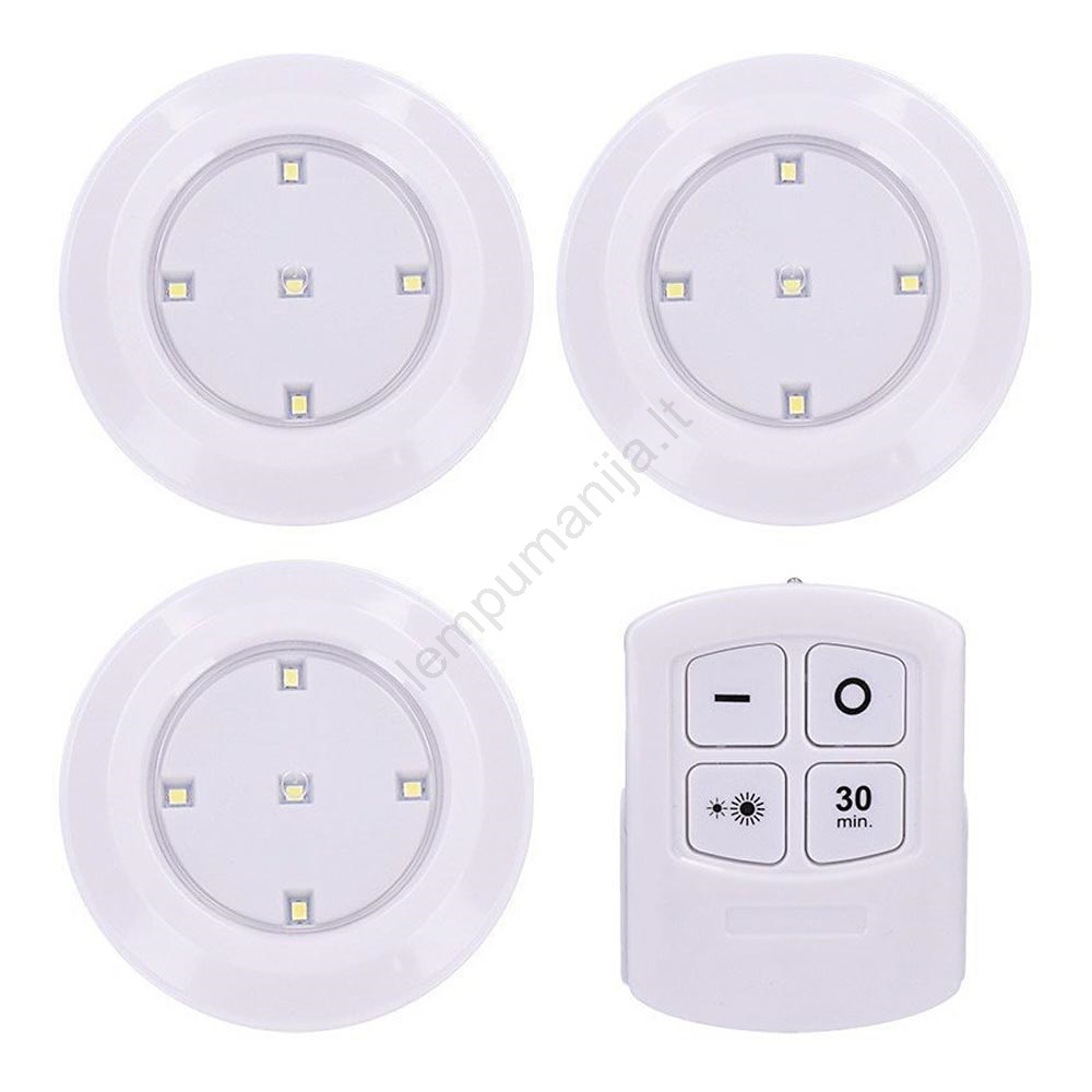 • LED apšvietimo rinkinys (3 vnt.) su nuotoliniu pulteliu.