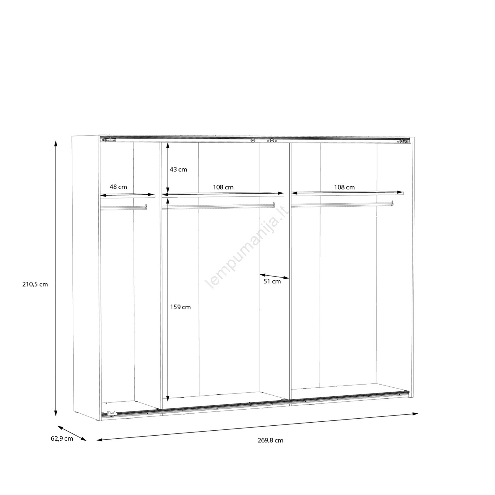 • Spinta turi drabužių kabyklas, lentynas ir didelę vietą jūsų drabužiams, rankinėms ir sezoniniams daiktams.