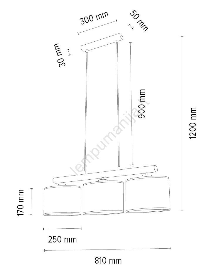• Pakabinamas šviestuvas ant laido MERCEDES 3xE27/40W/230V balta/ąžuolas