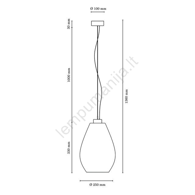 • Pakabinamas šviestuvas ant laido PIRO 1xE27/60W/230V, bukas