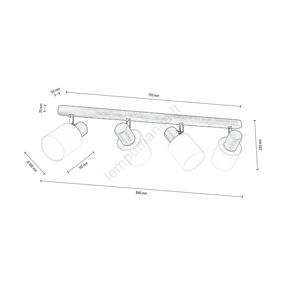 Lubinis taškinis šviestuvas TRENDY 4xE27/15W/230V pušis