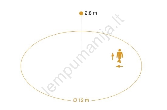 • Rekomenduojamas montavimo aukštis: 2,5 m - 3,5 m (optimalus montavimo aukštis: 2,8 m).