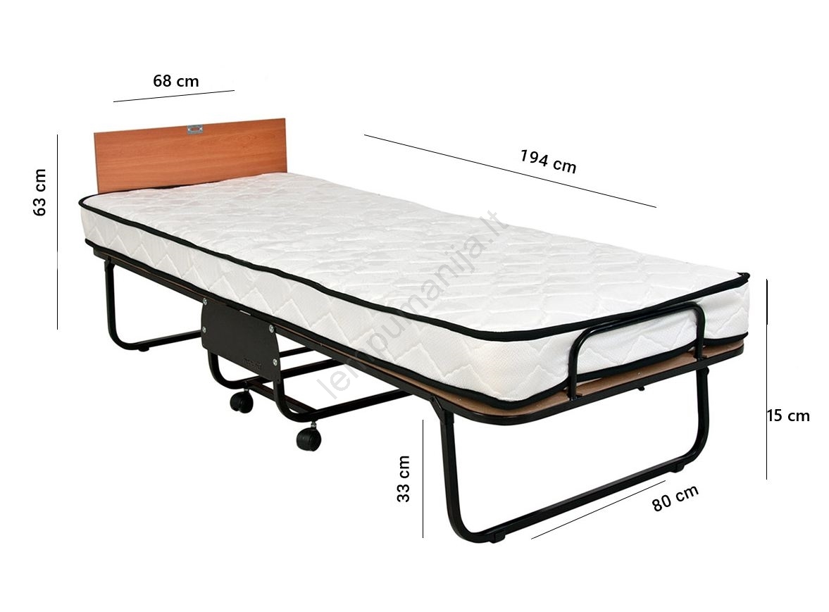 • Sulankstoma lova turi galvūgalį ir 15 cm spyruoklinį čiužinį, užtikrinantį maksimalų komfortą ramiam miegui.