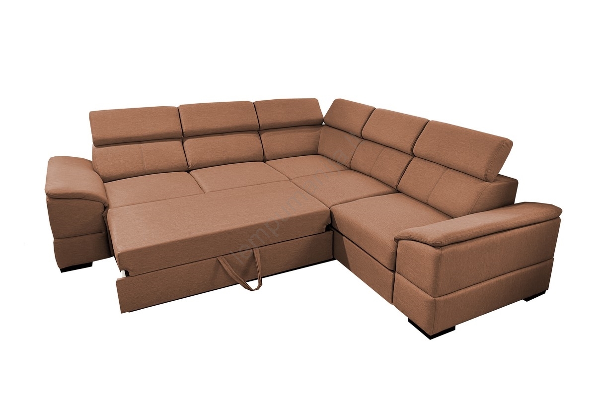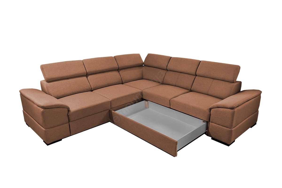 Universali kampinė išskleidžiama sofa-lova su daiktų laikymo vieta GRANADA ruda | Lempumanija