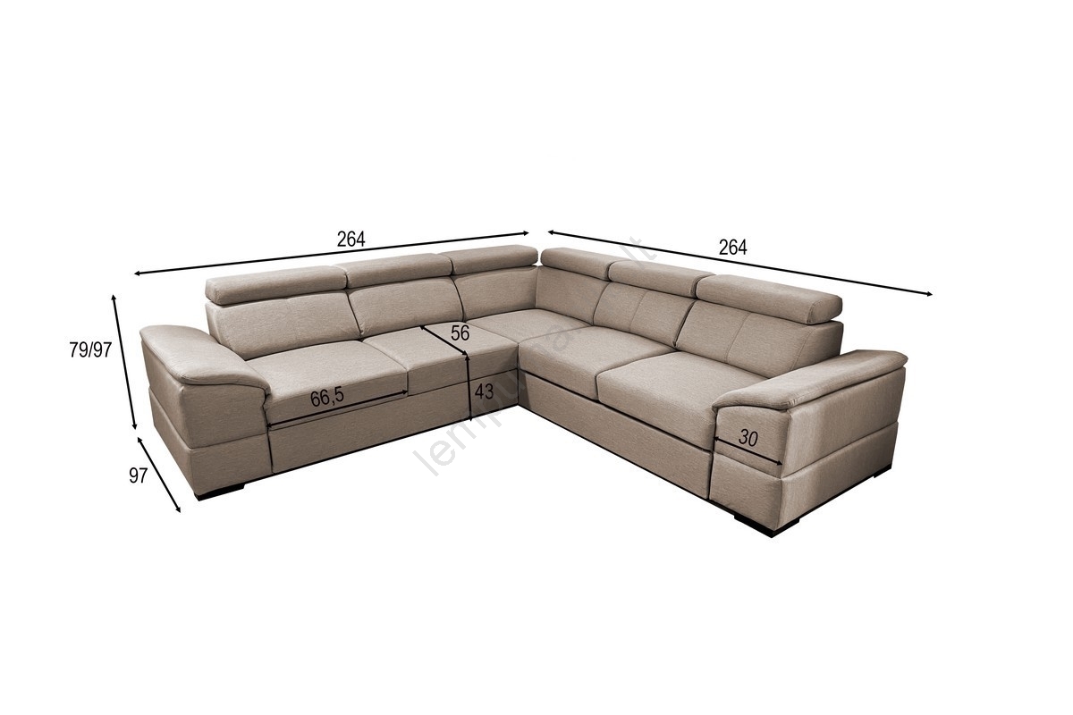• Erdvi kampinė sofa siūlo tiek patogumą, tiek stilingą dizainą.
