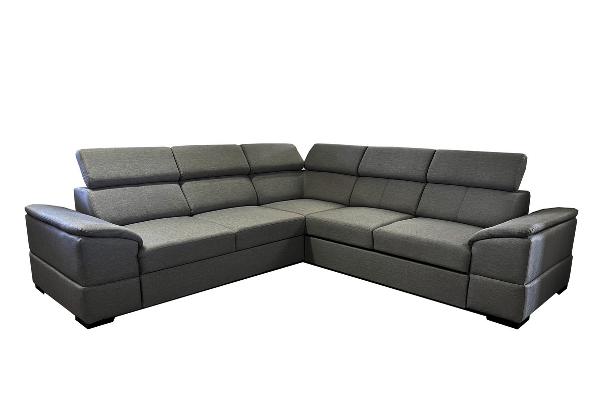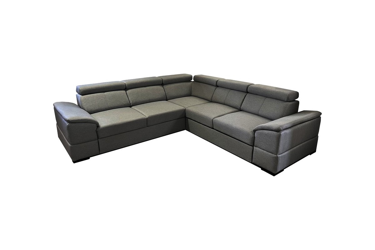 Universali kampinė išskleidžiama sofa-lova su talpia patalynės dėže GRANADA tamsiai pilka | Lempuman