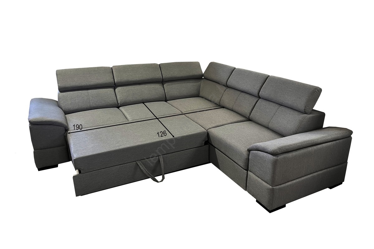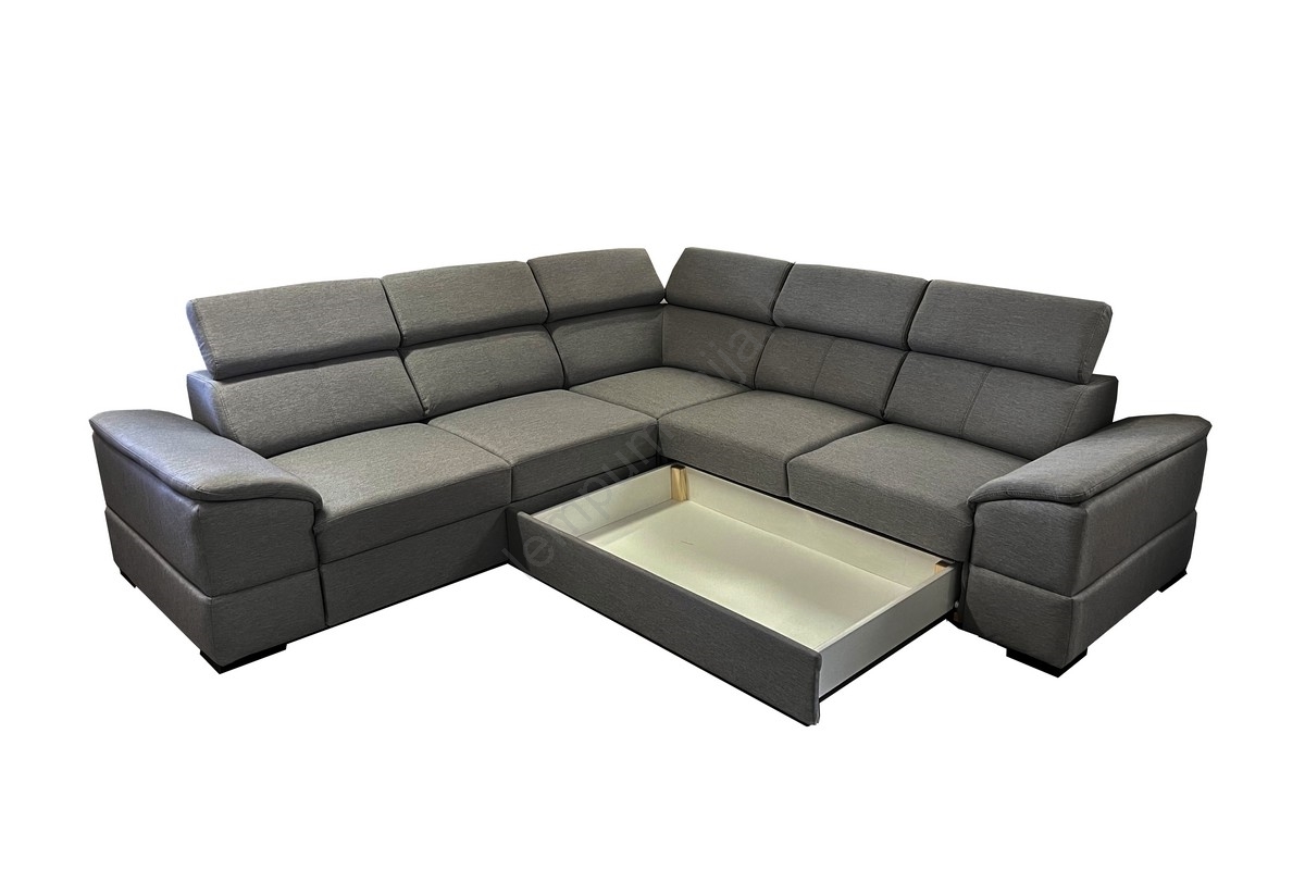 • Universali kampinė išskleidžiama sofa-lova su patalynės dėže GRANADA pilka