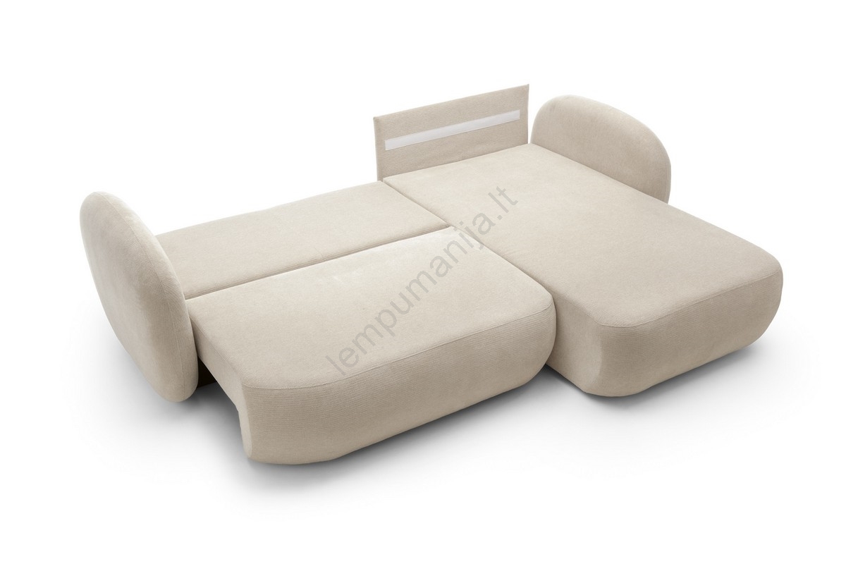 • Kampinė L formos išskleidžiama sofa-lova OLBIA, dešinės pusės, smėlinė, su patalynės dėže