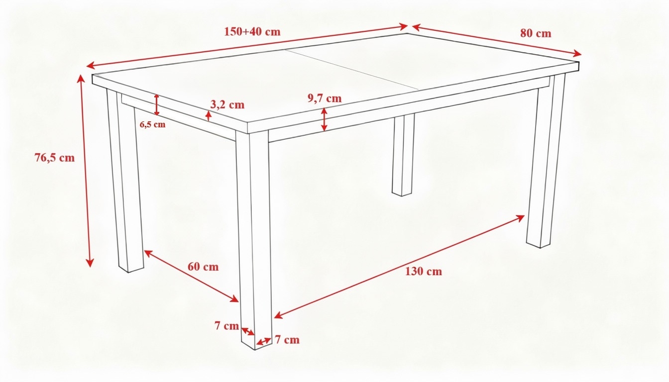 • Išskleisto stalo matmenys: 190 x 80 cm.