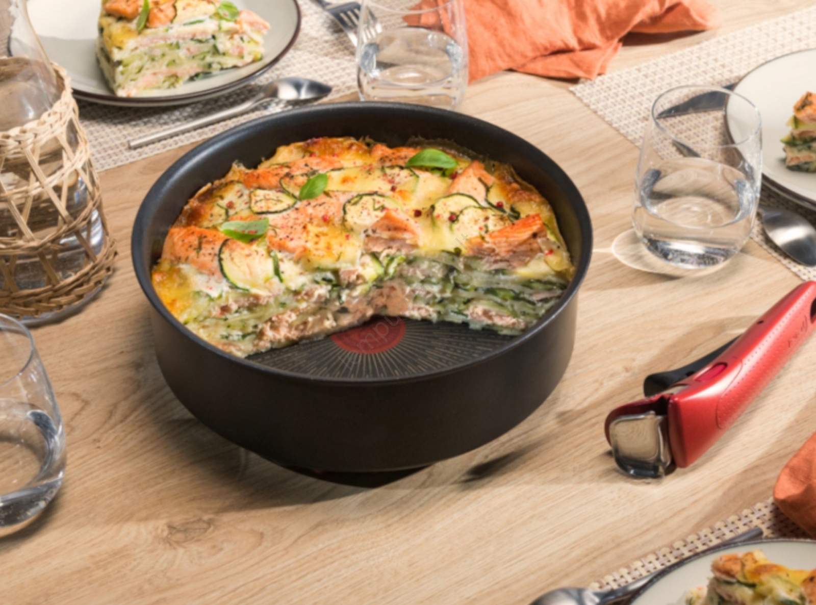 • Galima naudoti ir orkaitėje (be pritvirtintos rankenos) esant aukštesnei temperatūrai — tinkama kepimui ir apkepimui.