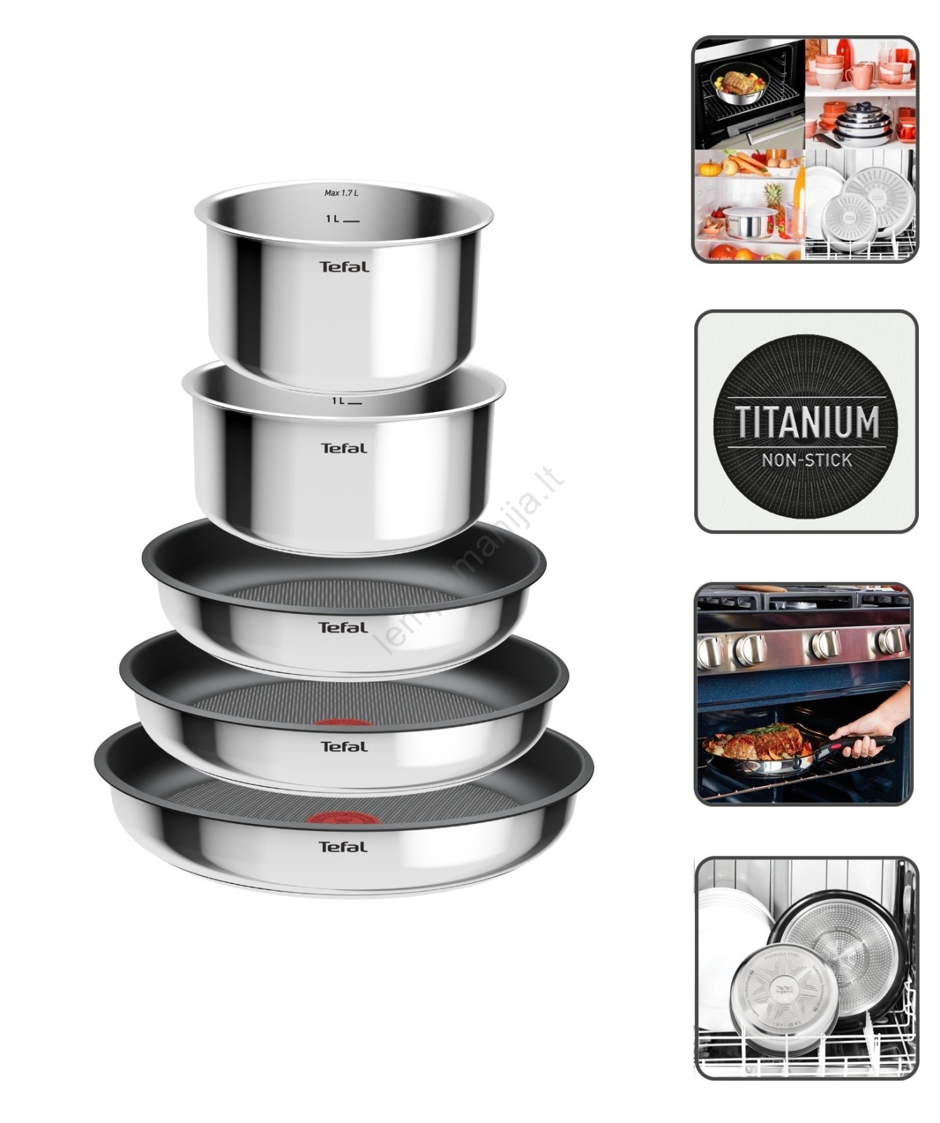 Tefal - 6 dalių INGENIO COOK nerūdijančio plieno indų rinkinys