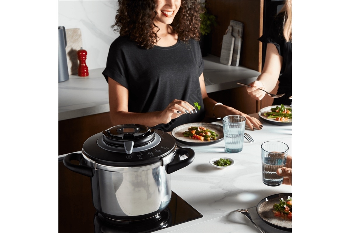 • Leidžia gaminti iki dviejų kartų greičiau nei įprastas virimas puode dėl slėgio mechanizmo.