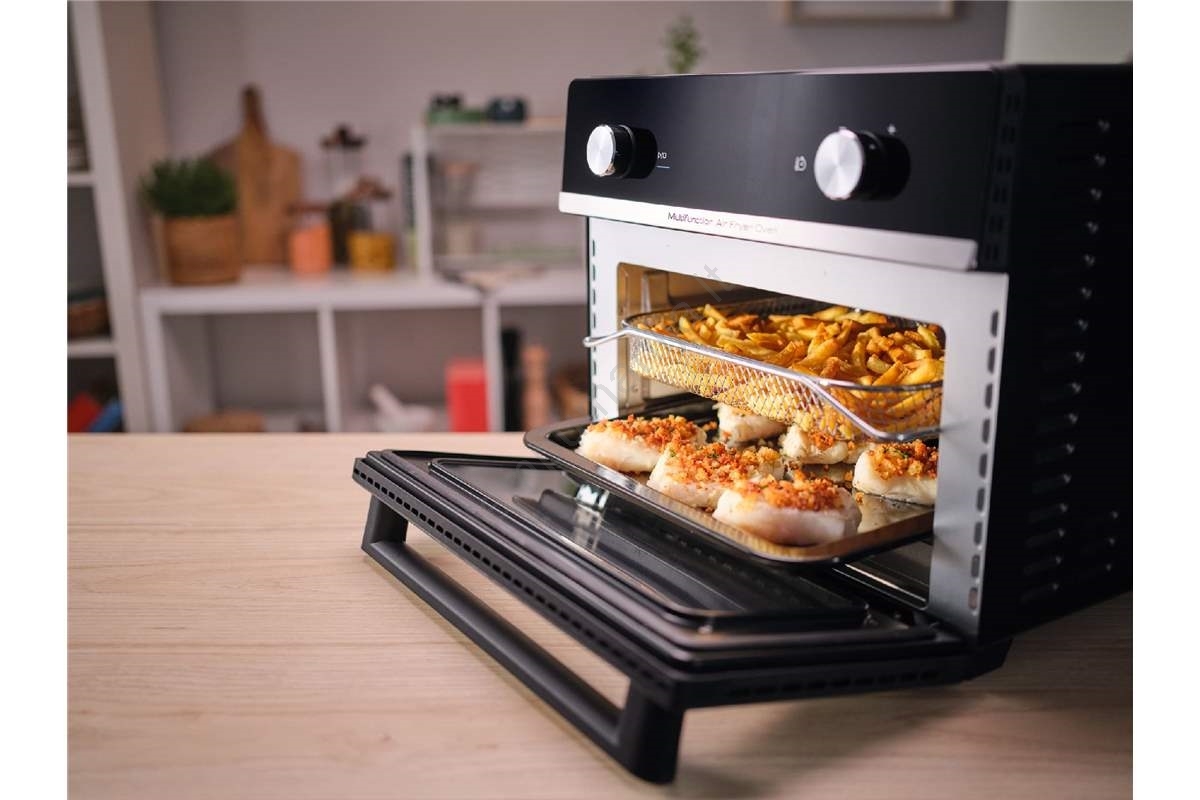 • Didelė oro gruzdintuvė ir daugiafunkcinė orkaitė viename — talpa 20 l, ideali patiekalų ruošimui šeimai ar mažesnei kompanijai.