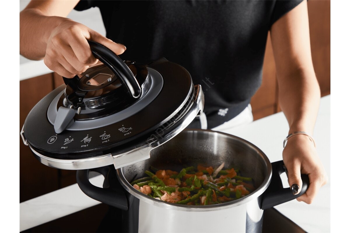 • Pažangus slėginis puodas su 6 apsauginėmis sistemomis, leidžiantis gaminti iki 2 kartų greičiau ir taupyti energiją.