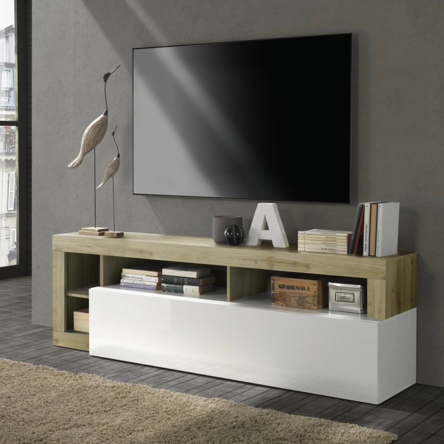 Televizinis staliukas LENOR baltas/šviesus ąžuolas | Lempumanija