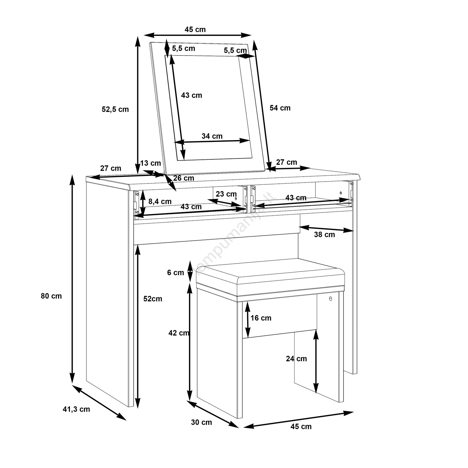 • Turi dvi stalčius, suteikiančius daug vietos kosmetikai ir kitiems daiktams.