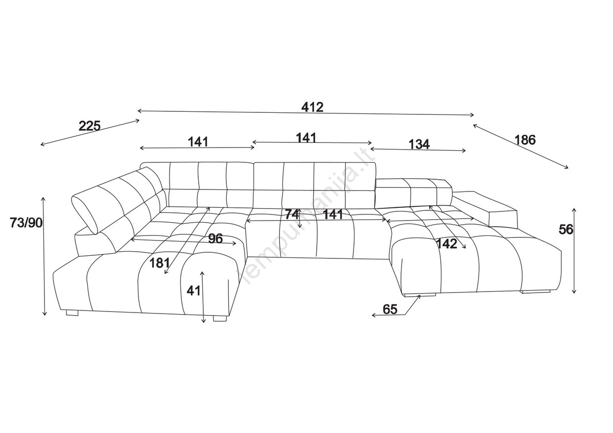 • Sėdynės nugarėlę puošia kokybiška apmušalai, todėl sofa gali būti laisvai pastatyta kambario erdvėje.