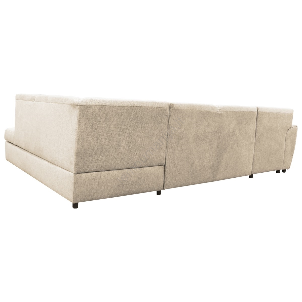 Išskleidžiama U formos kampinė sofa SERPA, dešinė, smėlinė, su talpia daiktų dėže | Lempumanija