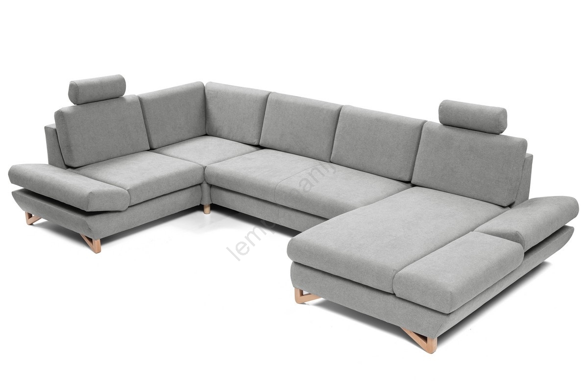 Išskleidžiama U formos kampinė apmušta sofa AVESTA, pilka, su talpia daiktadėže | Lempumanija