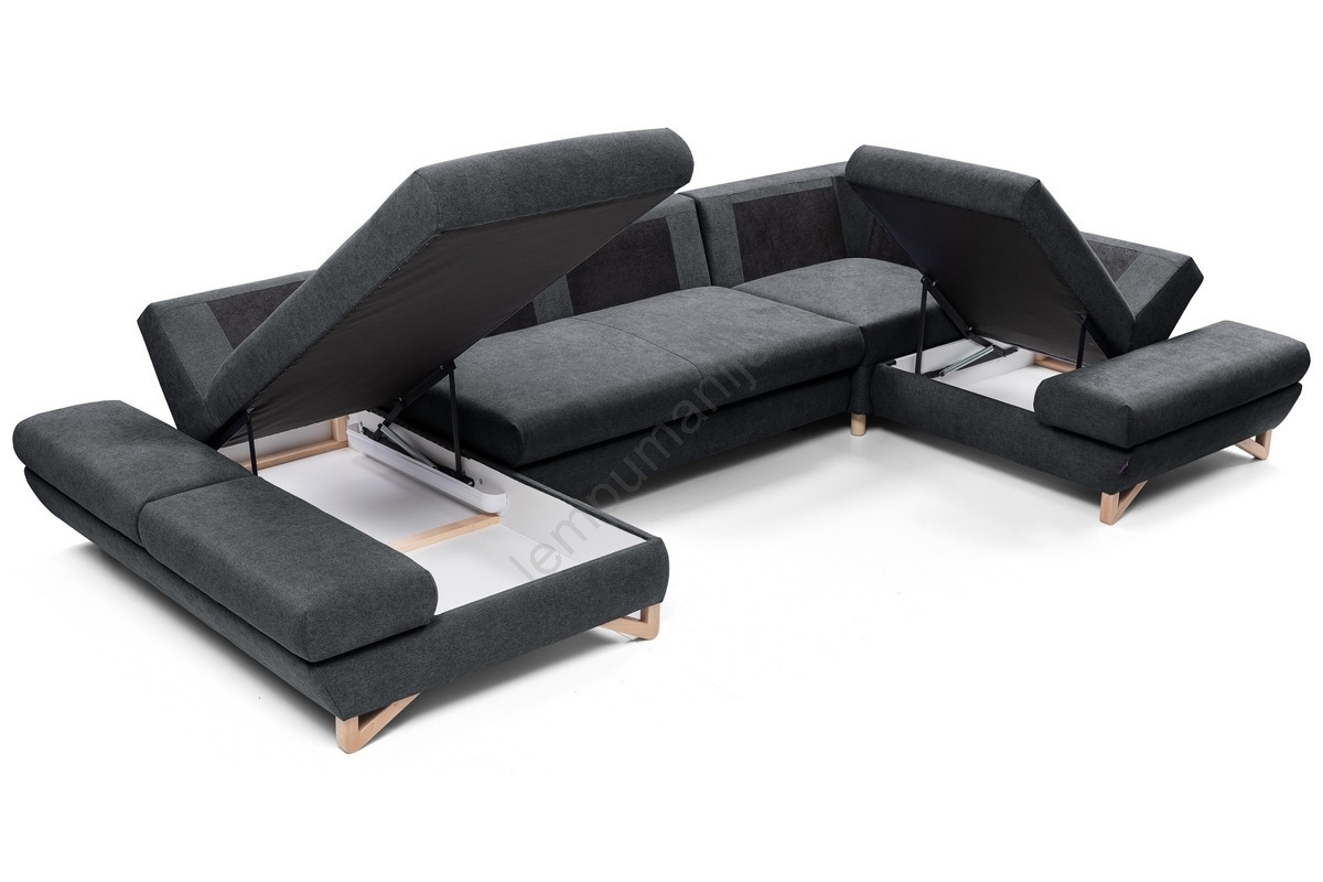 • Išskleidžiama U formos kampinė apmušta sofa su daiktų laikymo vieta AVESTA antracitas