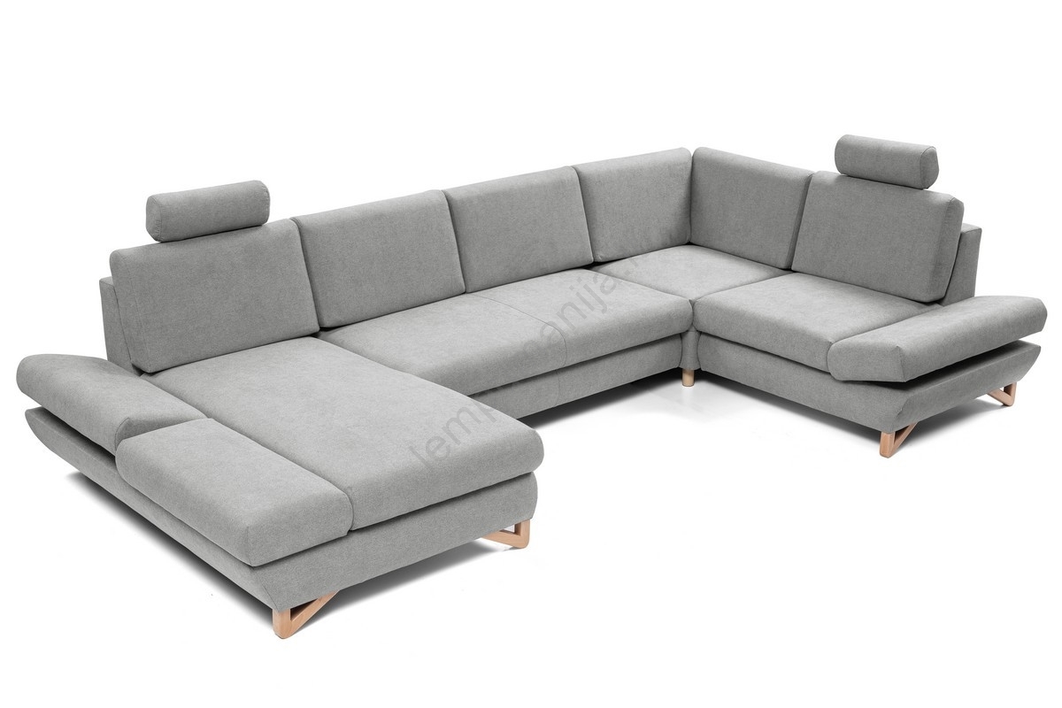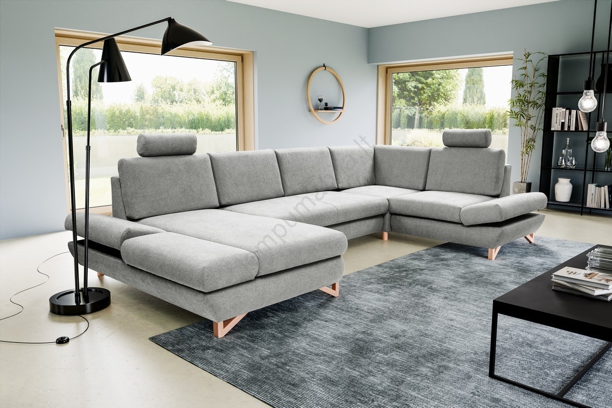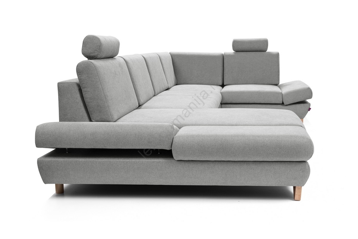 • Išskleidžiama U formos kampinė minkšta sofa su daiktadėže AVESTA, pilka